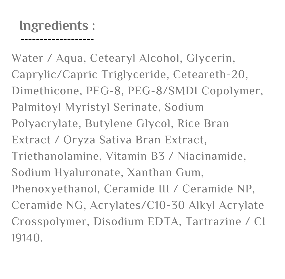 المكونات الاساسية:نياسيناميد, هيالورونيك اسيد, سيراميدات