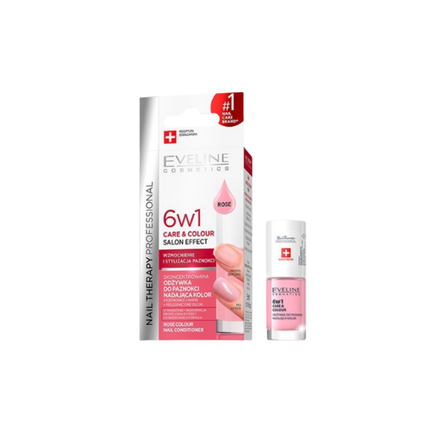 EVELINE 6in1 Care & Color Rose Salon Effect - 5ml | ايفيلين 6 بـ 1 مقوي للأظافر مع لون وردي - 5 مل