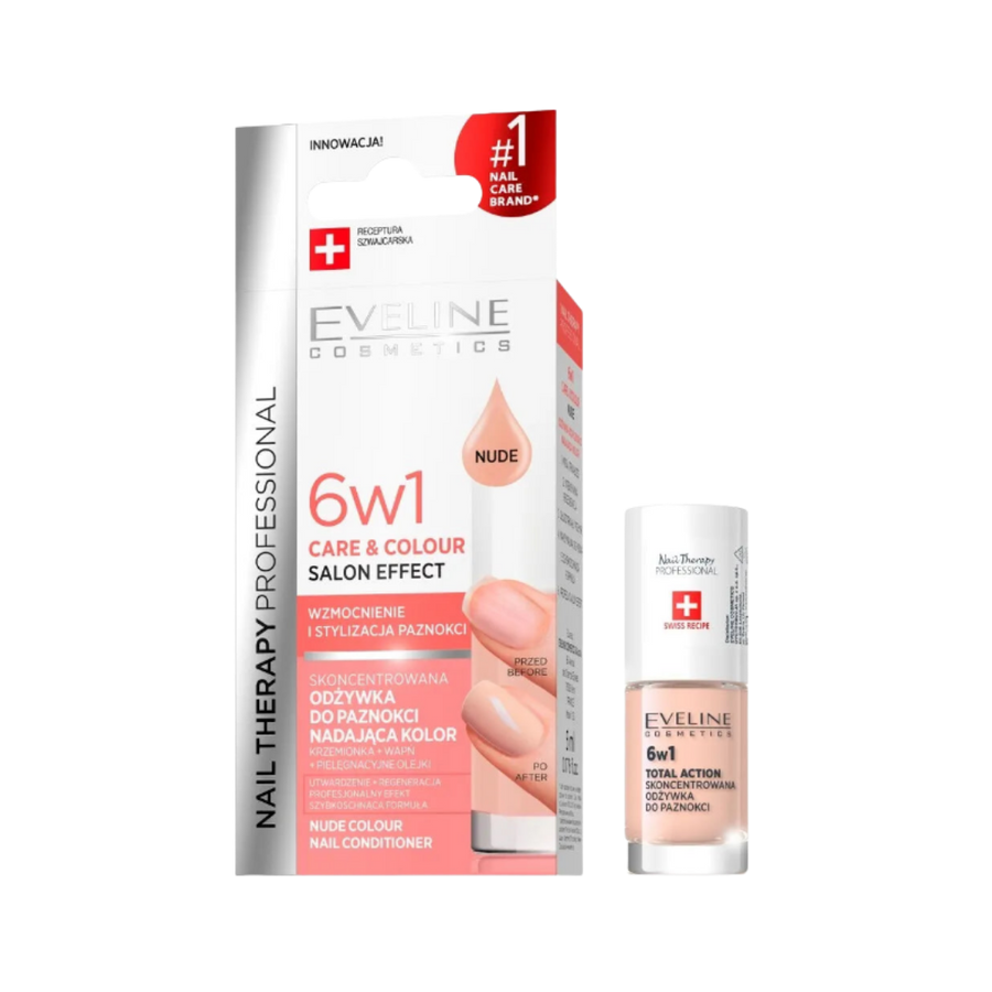 Eveline 6in1 Care & Color Nude Salon Effect - 5ml | ايفيلين 6 بـ 1 مقوي للأظافر مع لون بيج - 5 مل
