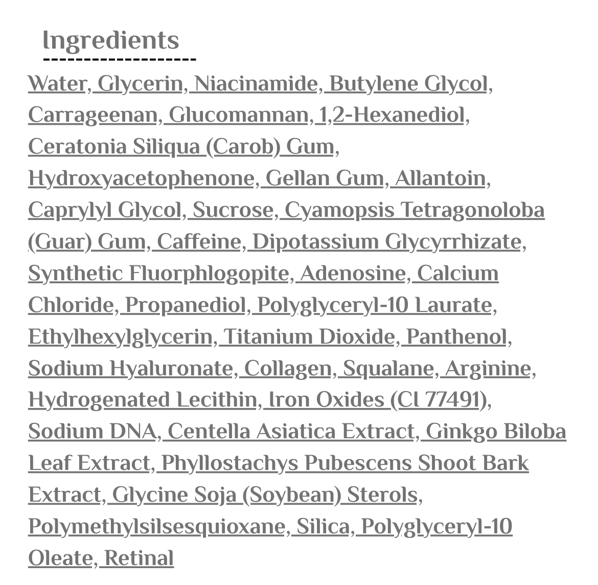 • كولاجين (Collagen): يعزز مرونة البشرة ويحسن نضارتها.